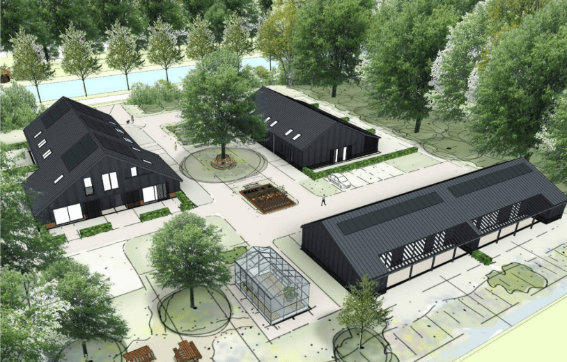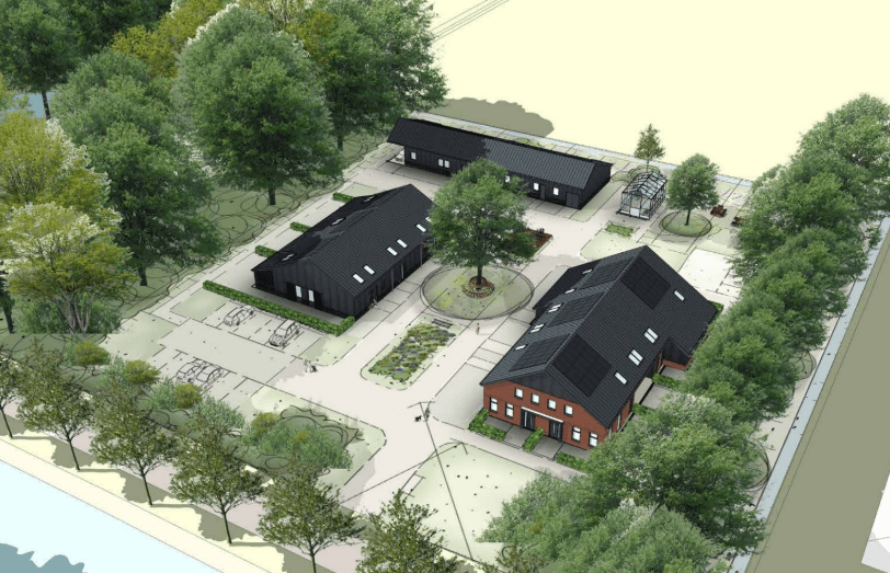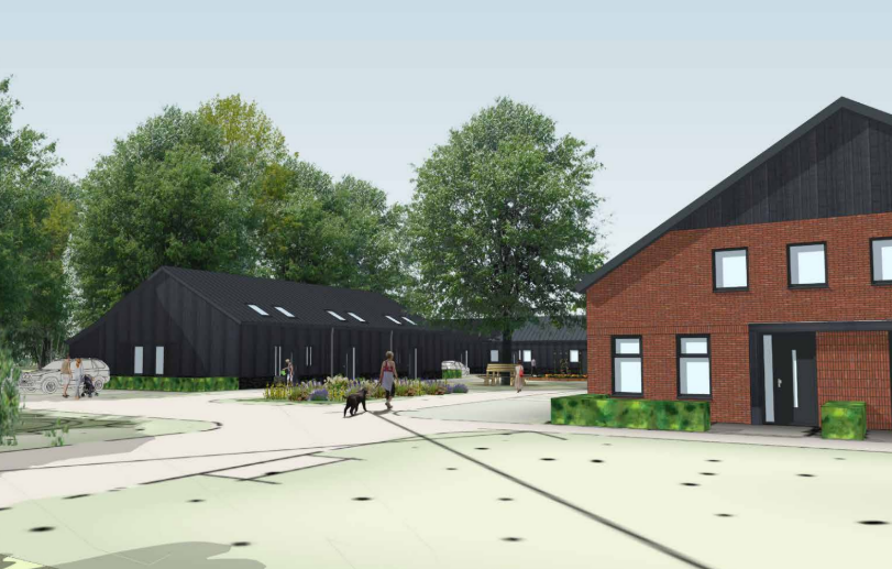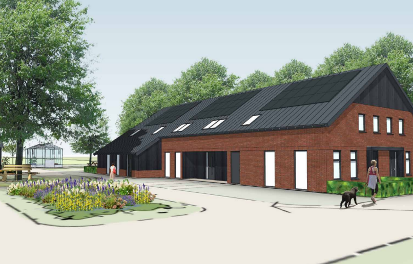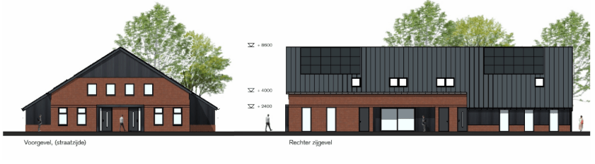 Onderstaand de gevels van gebouw B (woningtype boerderij)