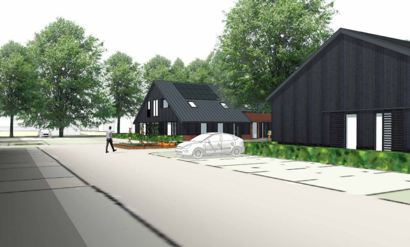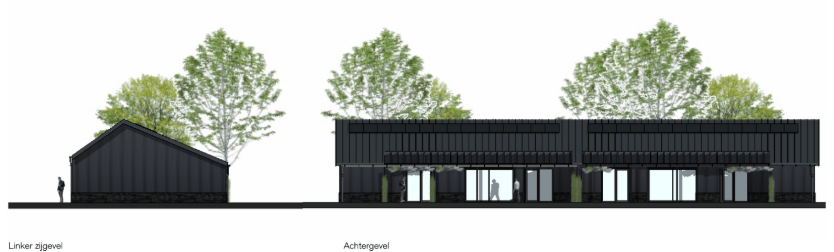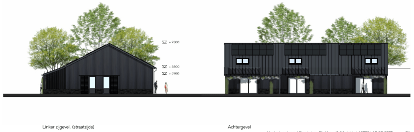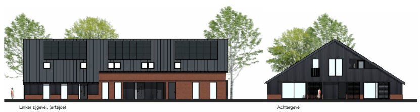 Onderstaand de gevels van gebouw C (woningtype schuurwoning)