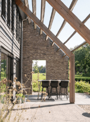 buitenruimte deels onderdeel van het hoofdvolume, rekening houdende met zonwering en gewenste privacy